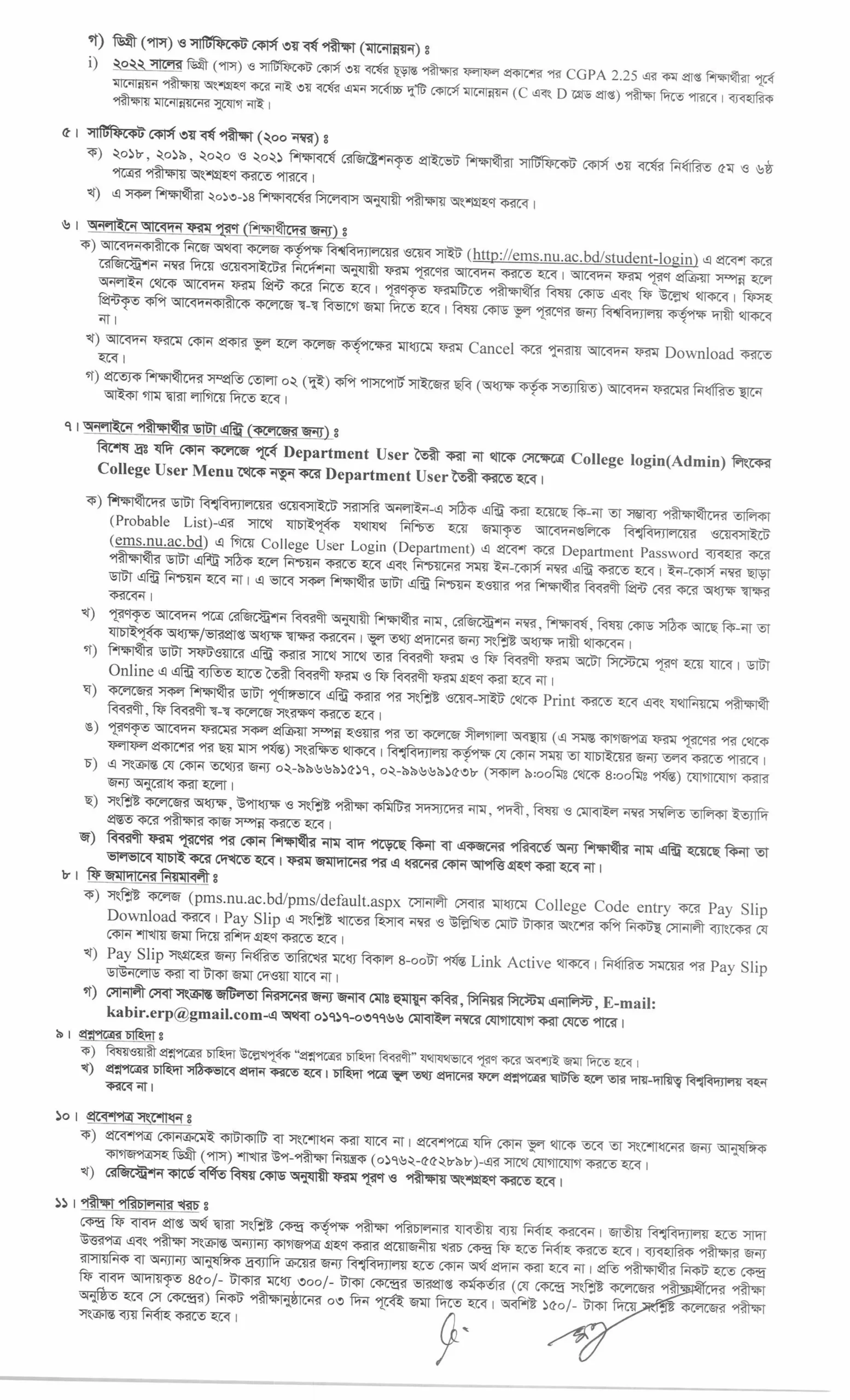 • এফ গ্রেড প্রাপ্ত শিক্ষার্থী: ২০২০, ২০২১, বা ২০২২ সালের ৩য় বর্ষ পরীক্ষায় এফ গ্রেড প্রাপ্ত শিক্ষার্থীরা শুধুমাত্র সেই কোর্সে/পত্রে পরীক্ষা দিতে পারবেন।