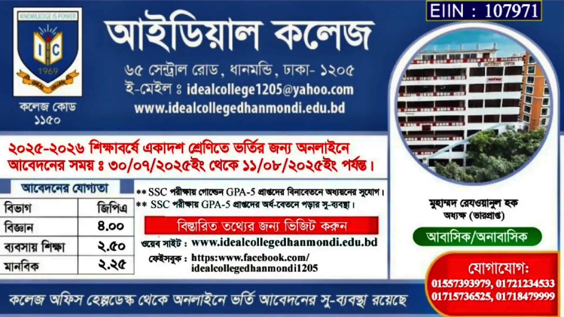 আইডিয়াল কলেজ একাদশ ভর্তি ২০২৫ – নোটিশ, যোগ্যতা, আবেদন আইডিয়াল কলেজ একাদশ ভর্তি ২০২৫ – নোটিশ, যোগ্যতা, আবেদন