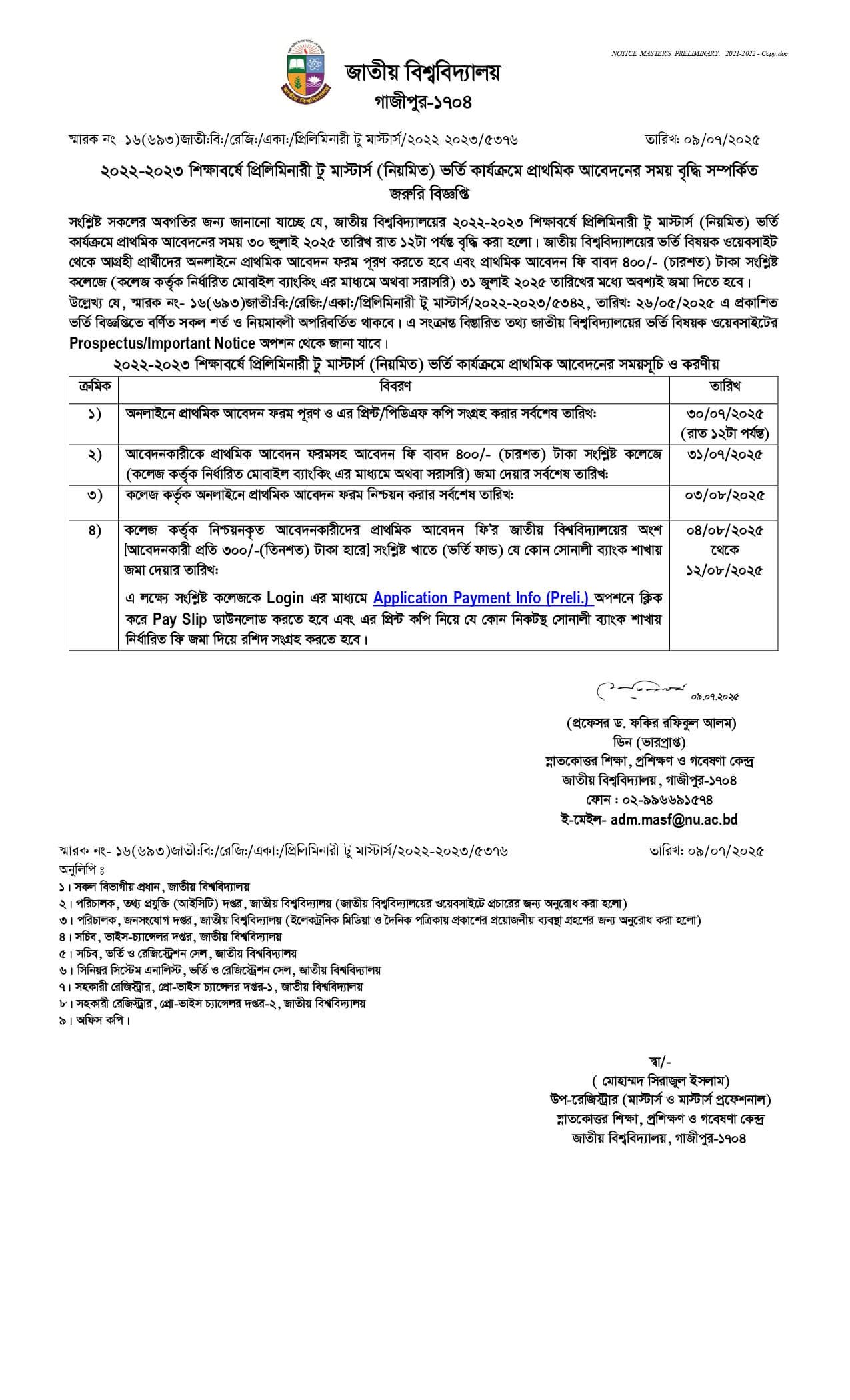 প্রিলিমিনারি টু মাস্টার্স ভর্তি অঙ্গীকারনামা ২০২৫