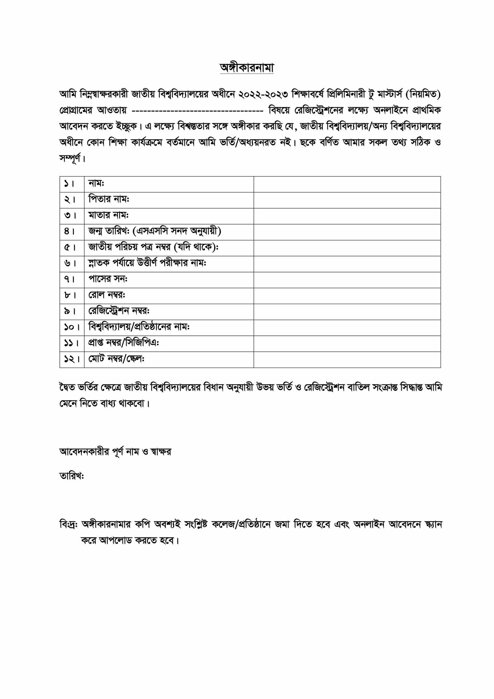 মাস্টার্স ভর্তির অঙ্গীকারনামা ডাউনলোড Ongikarnama 2025 আপডেট ফাইল